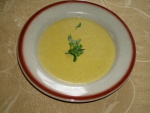 ½ brokolice, 1 brambor, 1 mrkev, 100 cizrny, kousek celeru, 1 cibule, špetka strouhaného muškátového oříšku, sůl, 100 ml smetany, 2 lžíce olivového oleje