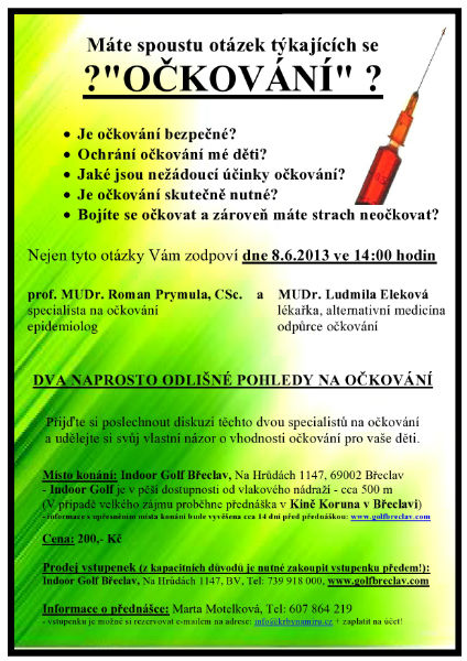 Přijďte si poslechnout jejich informace a udělat si svůj názor na věc, která je pro zdraví
